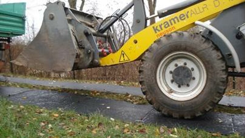Mobile Baustrassenmatten sind für extreme Beanspruchungen beim Schutz von Böden und schützenswerten Untergründen auf Baustellen entwickelt worden. Sie werden bei der Herstellung mit 1000 Tonnen verpresst, erhalten dadurch eine starke Robustheit und können als mobile Baustraße sogar für schwere Kettenfahrzeuge dienen. Als Bodenschutzmatten im GALA-Bau sind sie eine umweltschonende und preiswerte Lösung für die zeitweilige Belegung von Grasflächen, Pflasterungen und anderen Bodenbelägen. Auch bei Nässe sind sie sehr rutschfest und können bei jeder Wetterlage genutzt werden. Empfindliche Untergründe wie z. B. feuchter Rasen werden durch Räder oder Ketten der Baufahrzeuge nicht beschädigt. Durch einfache Eisenanker sind sie schnell auf Rasenflächen montiert und einsatzbereit. Renovierungs- oder Wiederherstellungskosten für zerstörte Rasenflächen werden damit vermieden.