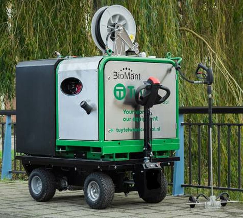 Das BioMant-Flex hat eine Wasserdurchflußrate von 15 l/min. Neu ist auch der Touchscreen mit intuitiver Steuerung, der eine einfache Bedienung auch vom Fahrzeug aus ermöglicht. Sowohl verschiedene Anbau-Spritzsysteme für große kommunale Flächen oder flexible Spritzausleger für den Einsatz in Reihenkulturen als auch Handlanzen für die unterschiedlichsten Einsatzzwecke sind verfügbar.